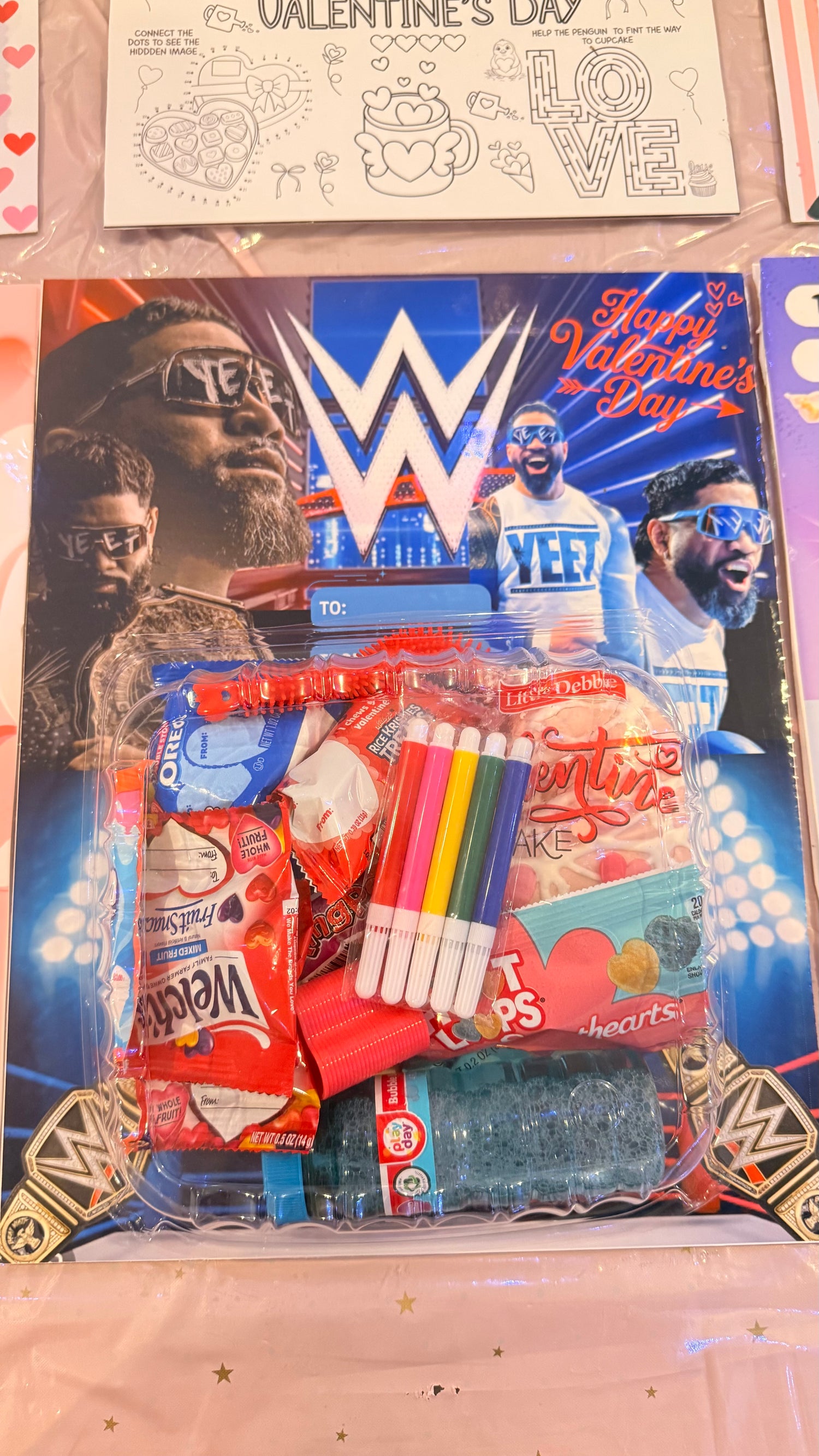 This jumbo Valentine's Day card is packed with surprises! Stuffed with candy and little toys, it's the perfect way to show someone special they're anything but average. Unfold layers of fun and sweetness that'll make their heart skip a beat. Whether it's for a friend, crush, or loved one, this oversized card transforms a simple greeting into an unforgettable experience. Make this Valentine's Day memorable with a gift that's as unique as they are.